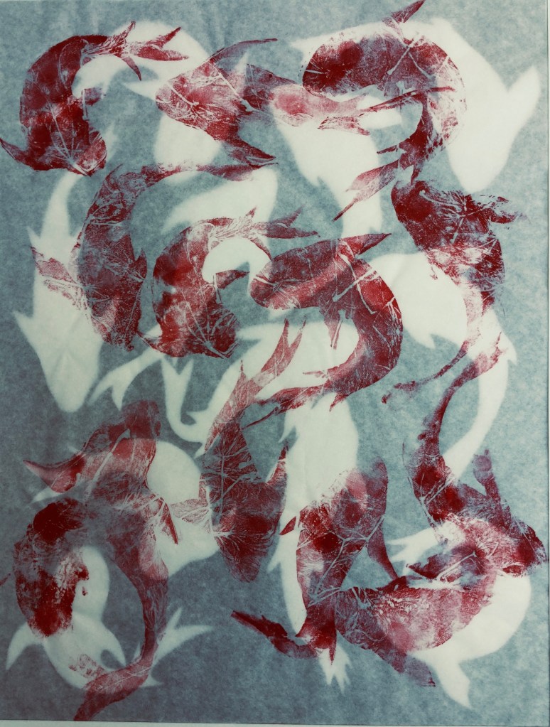 DANSE DES POISSONS 1 – Collagraphie sur papier Japonais – Format 40 x 50 cm – 2021 – Monotype