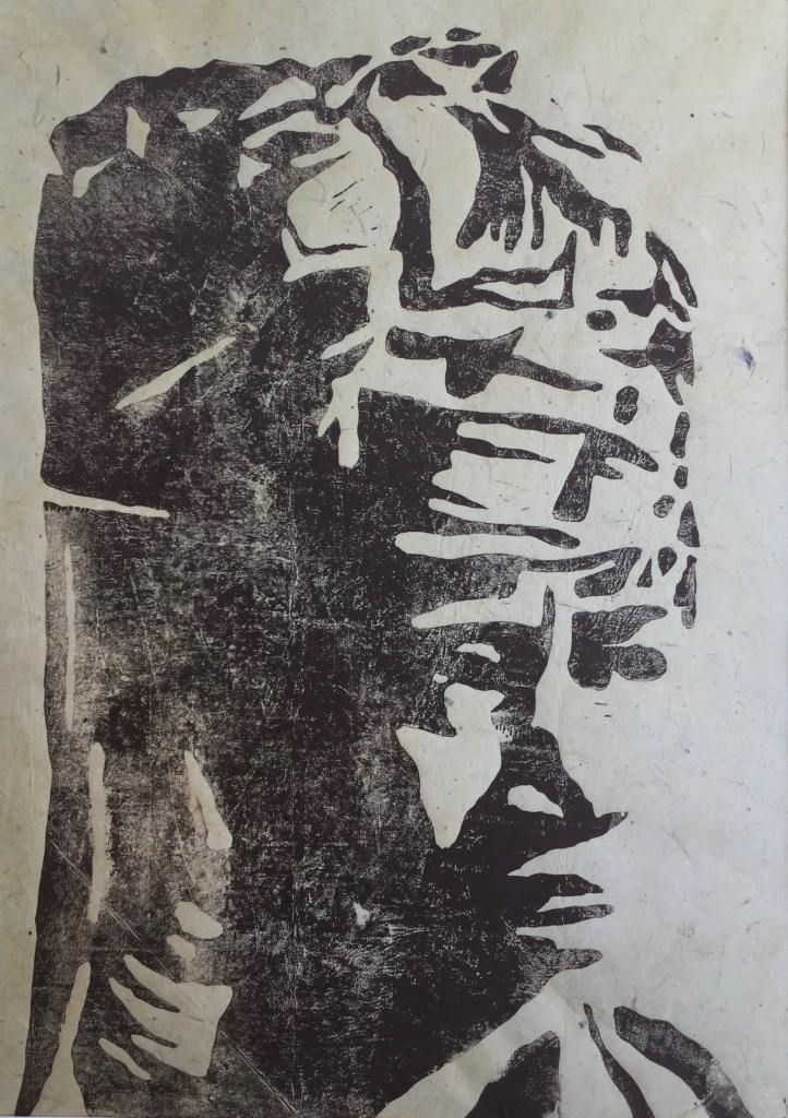 VI – Linogravure sur papier Népalais – Format: 40 x 50 cm – 2021 – Nombre de tirage: 60