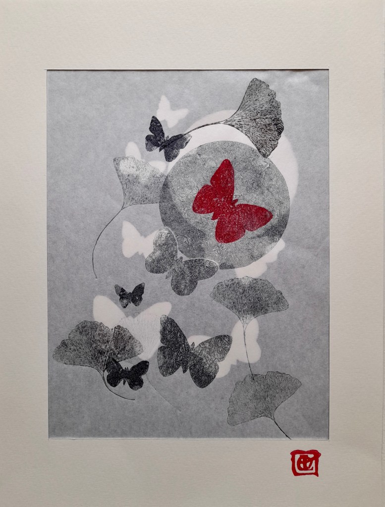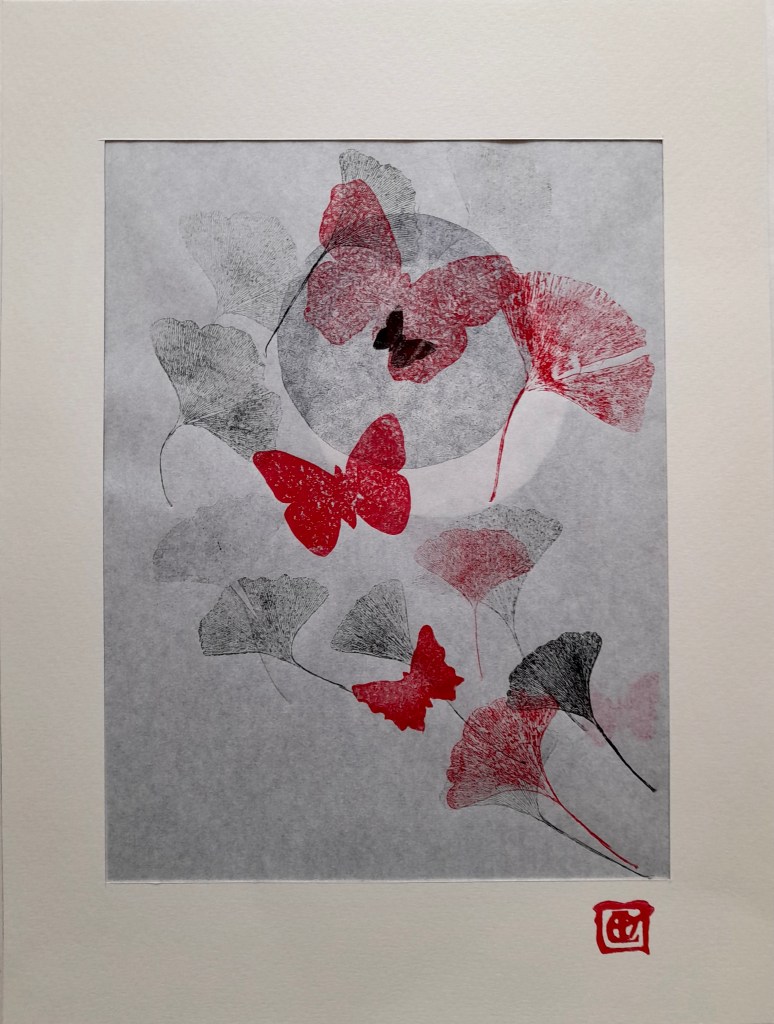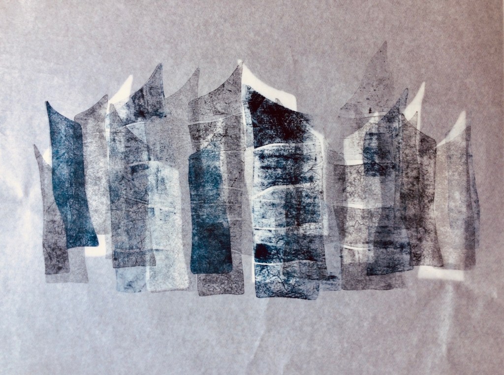 VOILES SUSPENDUES – Collagraphie sur papier Japonais – Format 40 x 50 cm – 2021 – Monotype