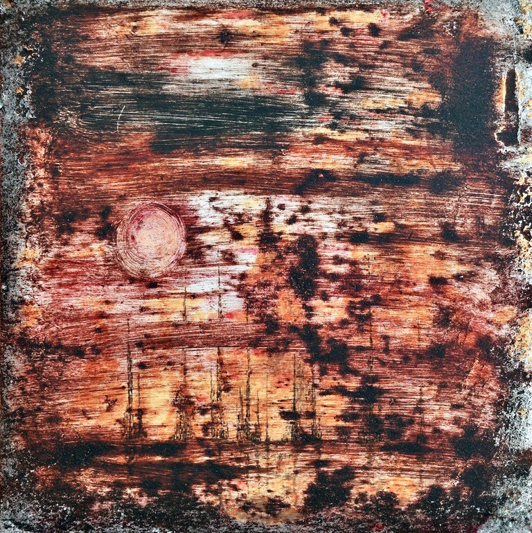 NUIT DE MOUSSON – Monotype – Taille douce sur tôle rouillé Format 27 x 27 cm – 2015 – Monotype