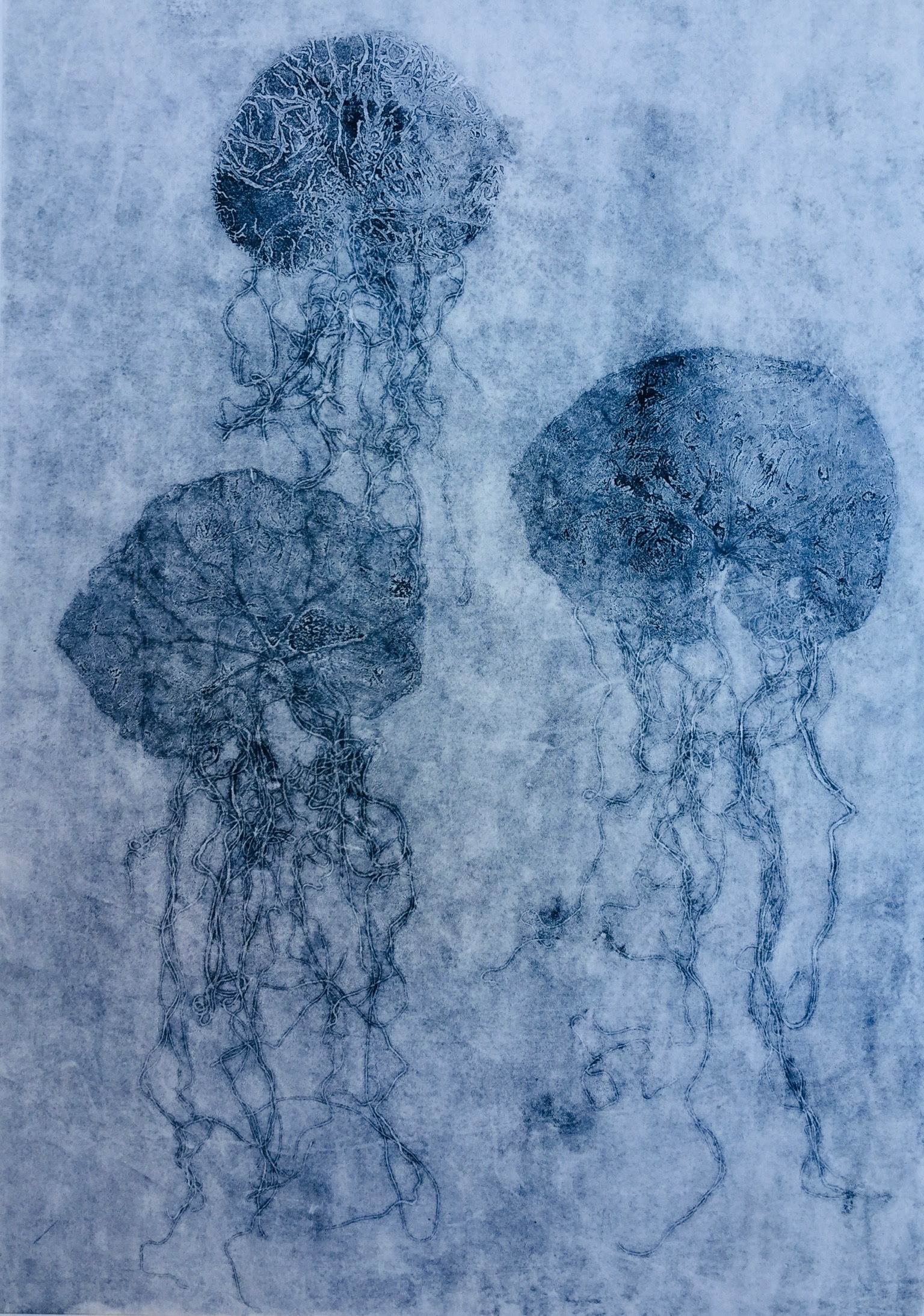 LE LANGAGE DES MÉDUSES 3 – Collagraphie sur papier Japonais – Format 40 x 50 cm – 2020 – Monotype