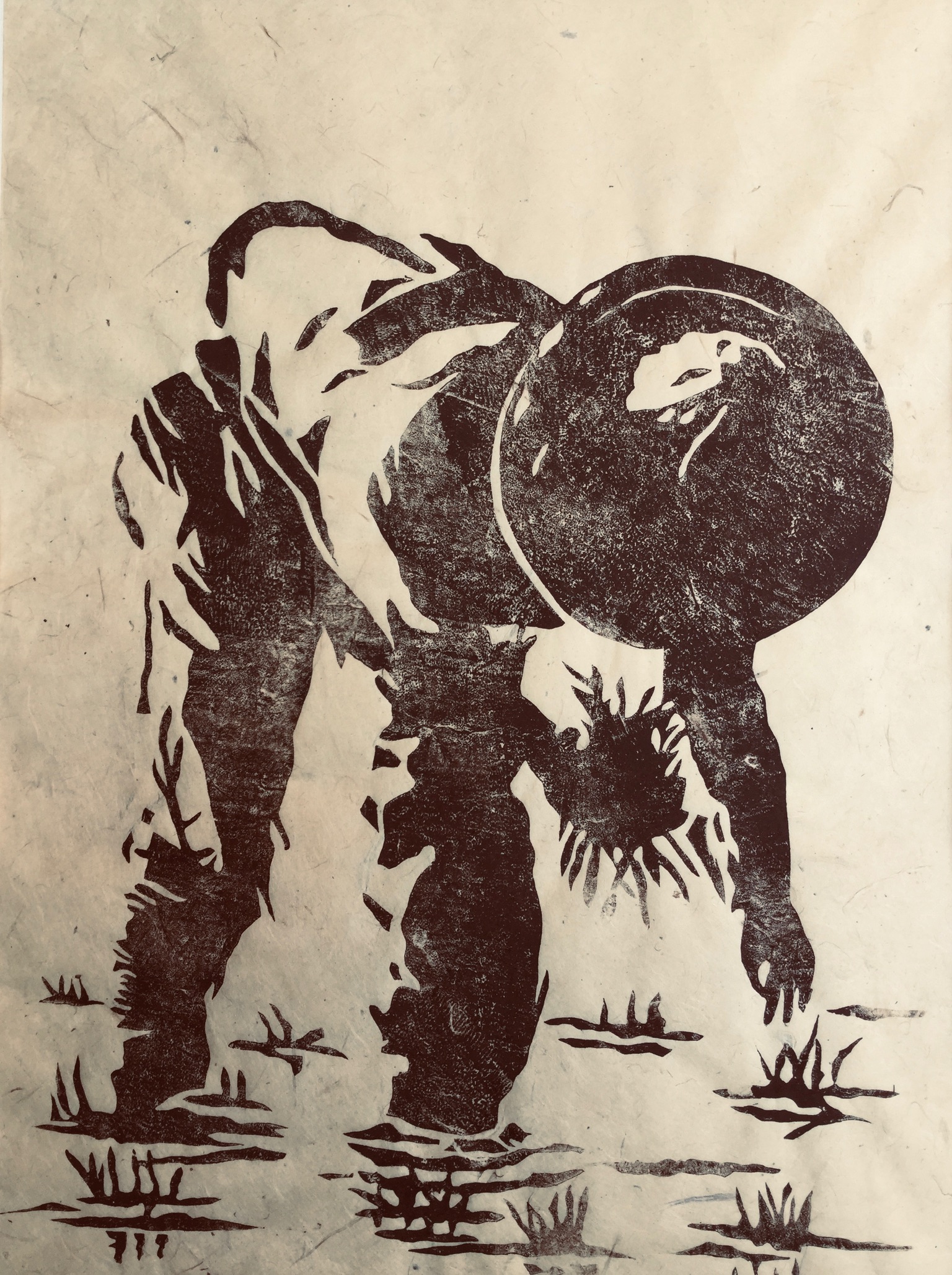LE PLANTEUR DE RIZ – Linogravure sur papier Népalais – Format: 40 x 50 cm – 2021 – Nombre de tirage: 60