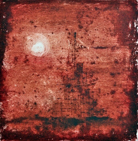 NUIT DE MOUSSON – Monotype – Taille douce sur tôle rouillé Format 27 x 27 cm – 2015 – Monotype