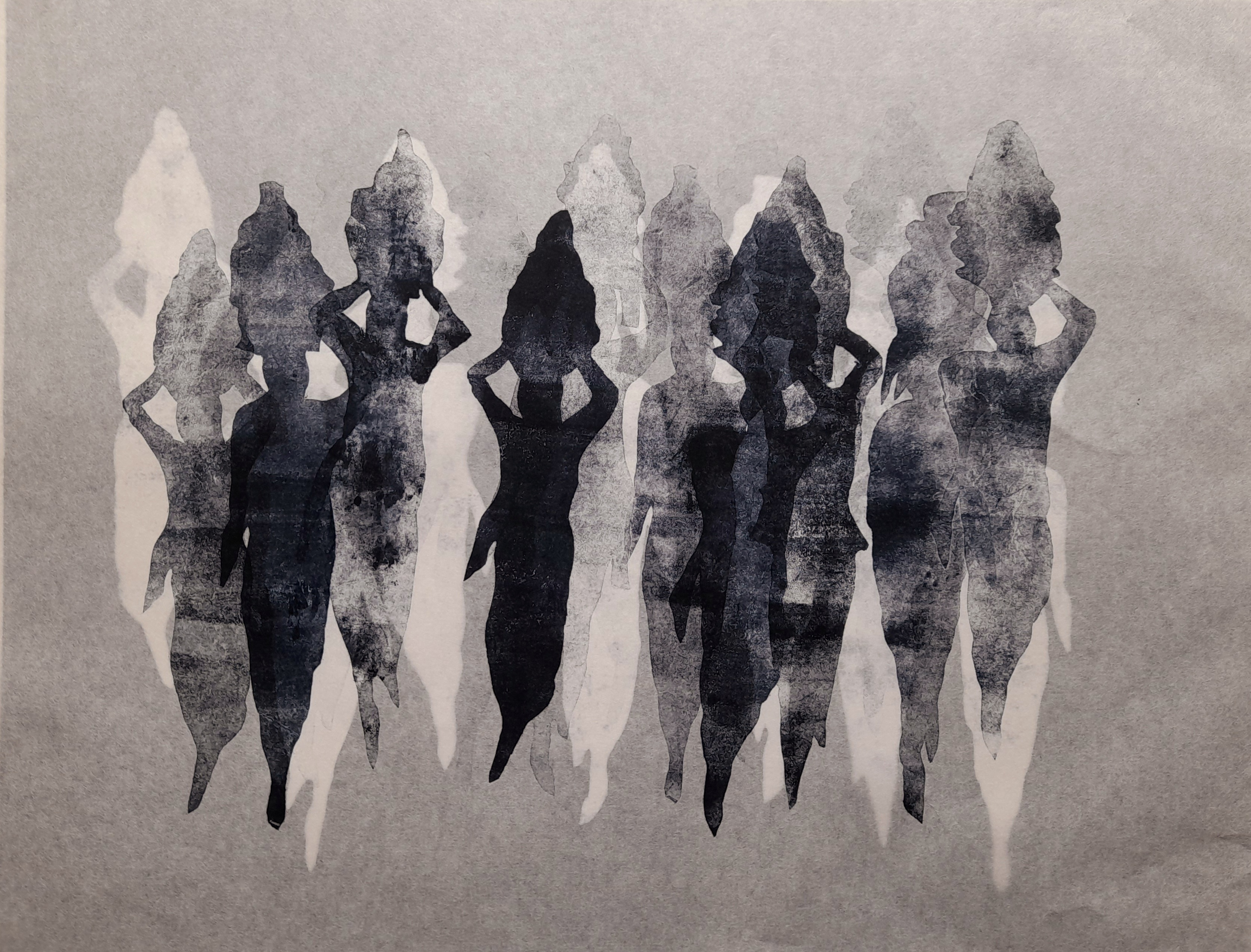 VOILES SUSPENDUES – Collagraphie sur papier Japonais – Format 40 x 50 cm – 2021 – Monotype
