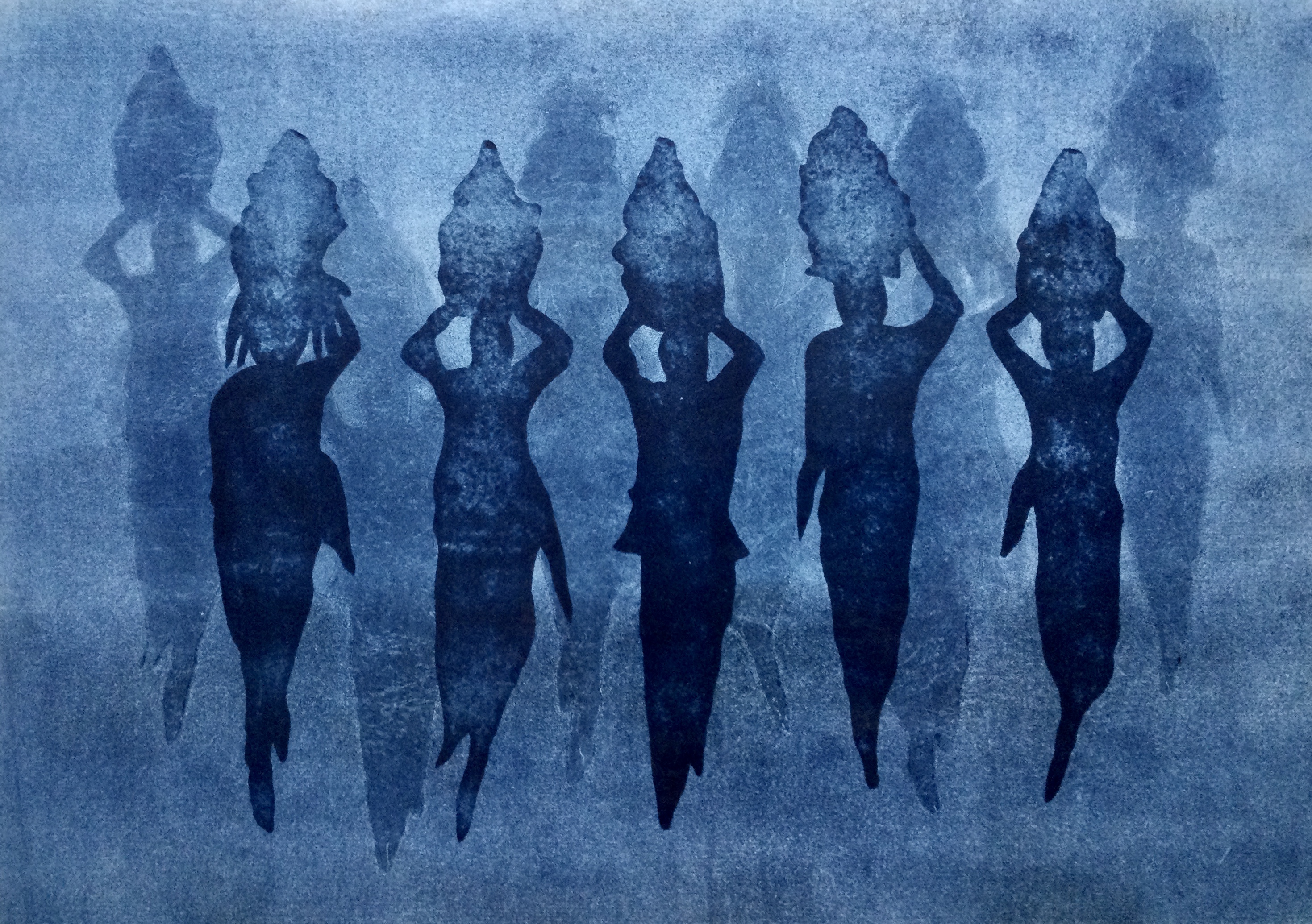 LES OFFRANDES À LA MER 1 – Collagraphie sur papier Japonais – Monotype – 40 x 50 cm – 2023