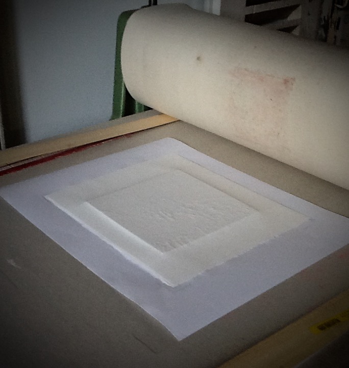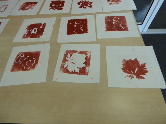 À partir d’une plaque de polystyrène et des feuilles … Et une presse . Empreinte de feuilles sur polystyrène et encrage léger.